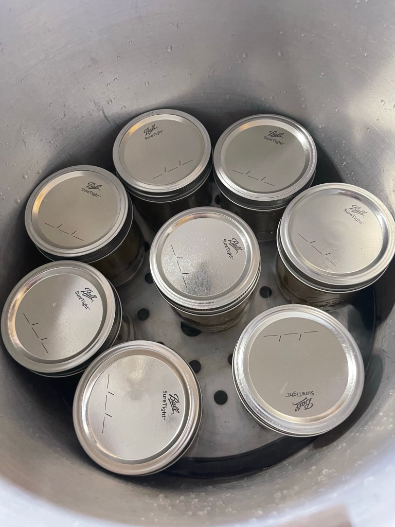 Allow jars to cool to room temperature and remove rings. Properly canned jars will remain sealed without the rings. Improperly sealed jars will have a loose lid and should be used immediately or discarded